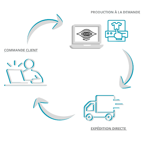 L'impression à la demande (POD) consiste à imprimer les vêtements uniquement lorsqu'une commande est passée. Cela signifie :